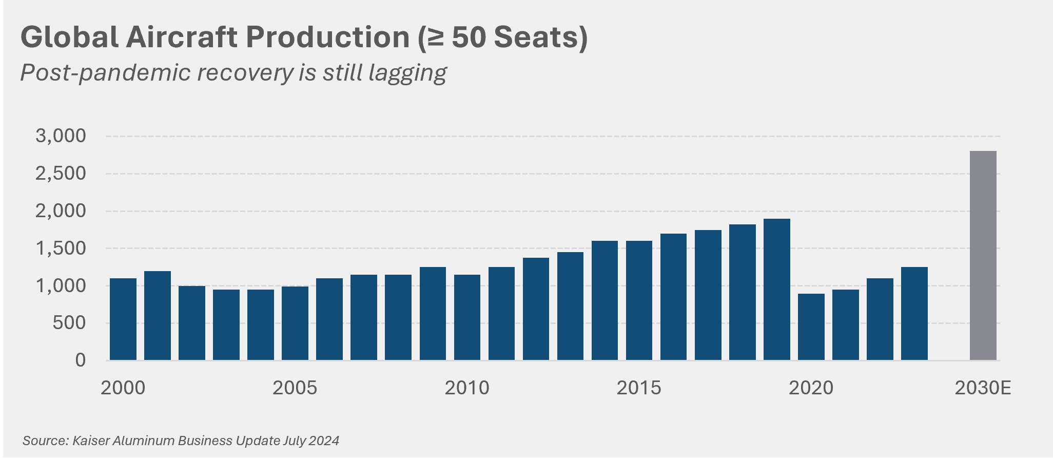 Fasteners are a critical component in the aerospace manufacturing industry, ensuring structural integrity and safety of aircraft. Growing demand for air travel and modernization of aging fleets are expected to propel the growth of aircraft production. Although the post-pandemic recovery has been challenging – amplified by well-publicized Boeing issues – production is expected to reach all time highs by the end of the decade, reinforcing a strong outlook for fastener businesses supporting the aerospace market.